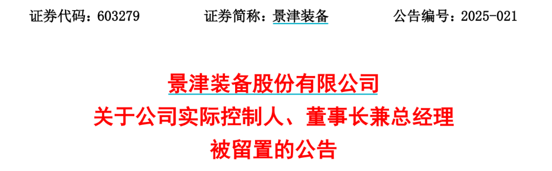 【导读】景津装备实际控制人、董事长姜桂廷被留置、立案调查