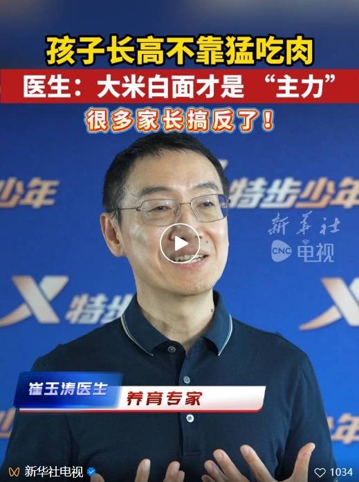 近日,有读者提供线索,说看到短视频上有专家说“大量吃肉反而耽误孩子长高,碳水才是长高关键”,想确认该说法是否可信。